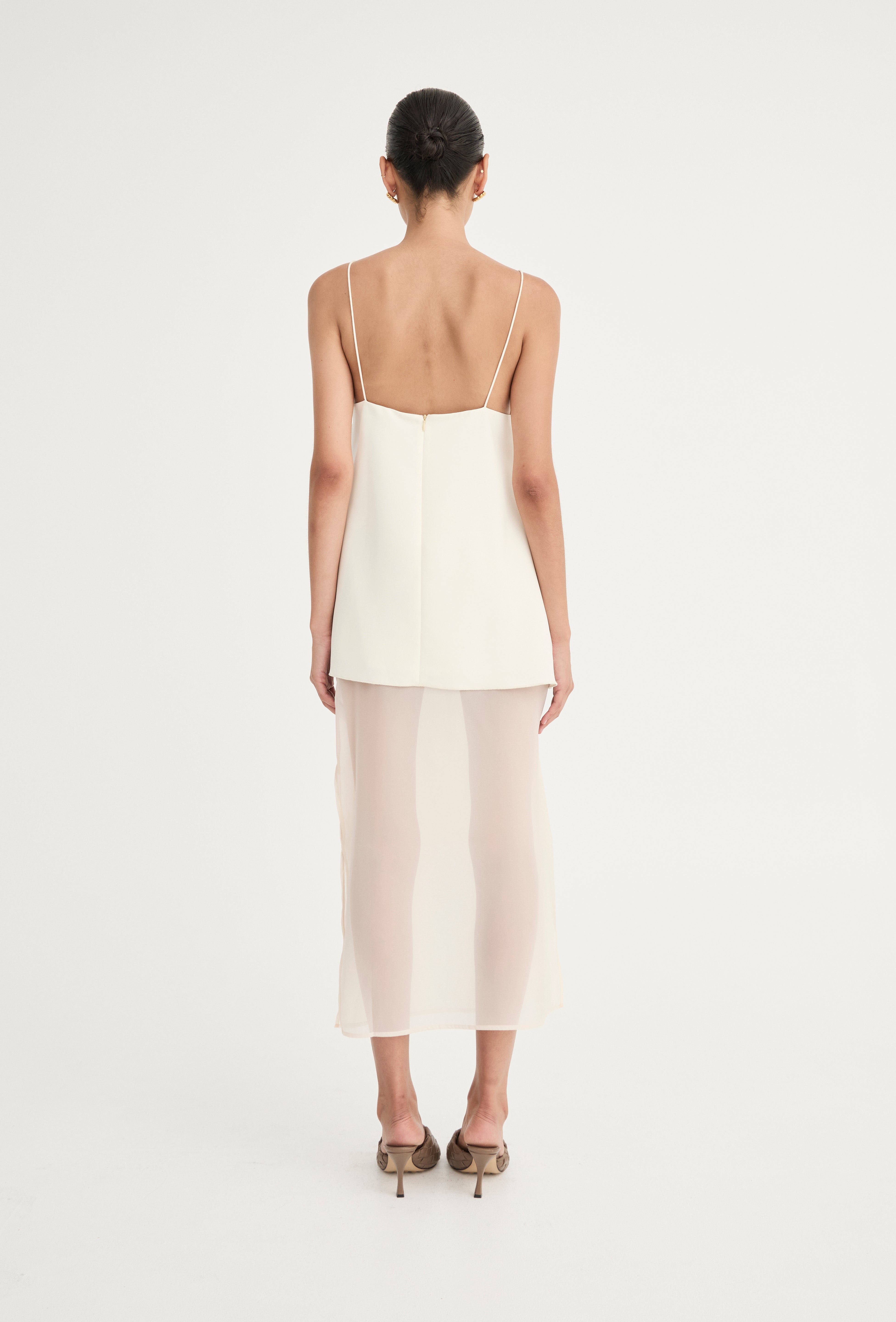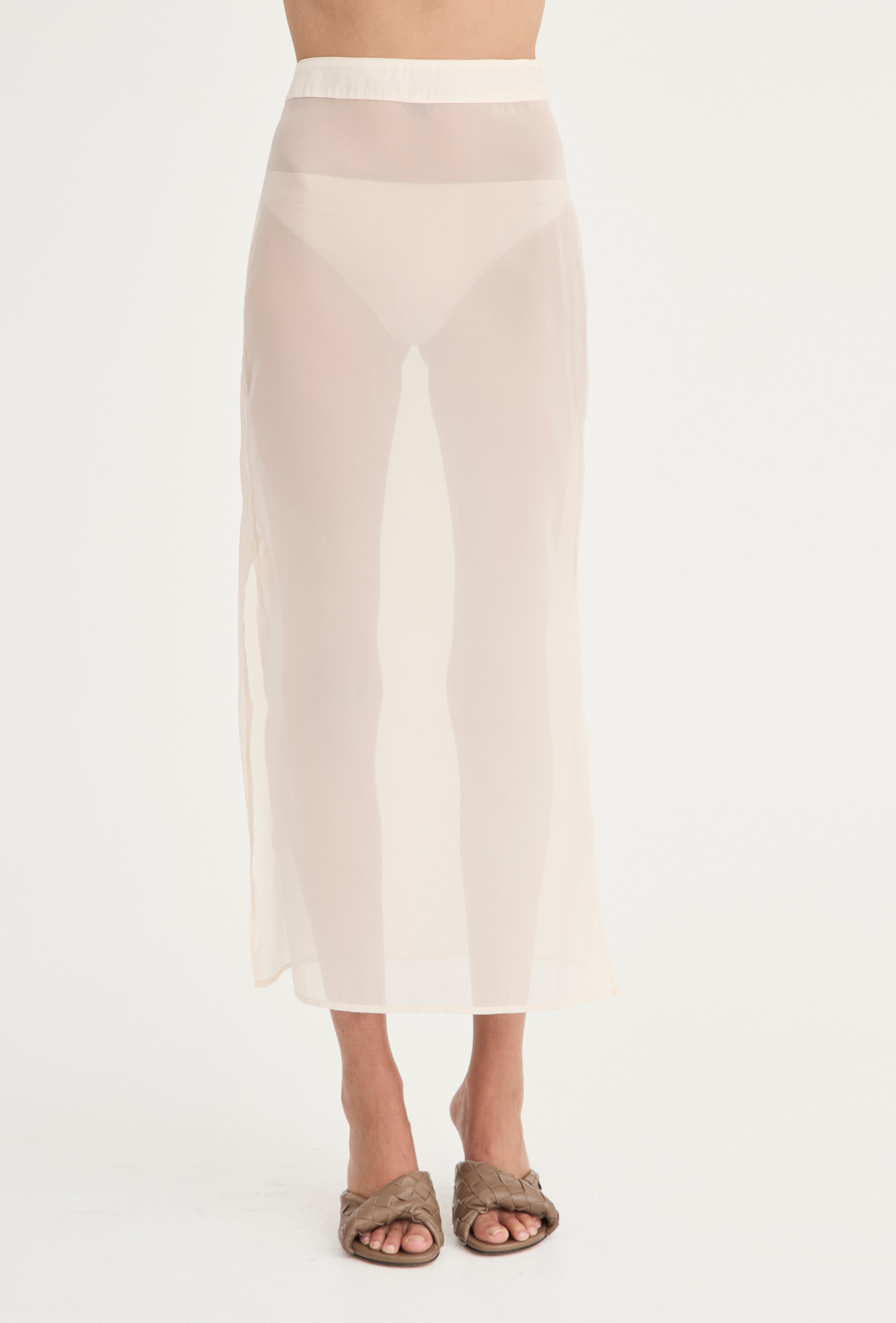 Introducing the Laurent Skirt, crafted from a sheer organza blend, this piece features 2 side splits, a hemmed high waist and invizible zip. Designed to be worn layered.