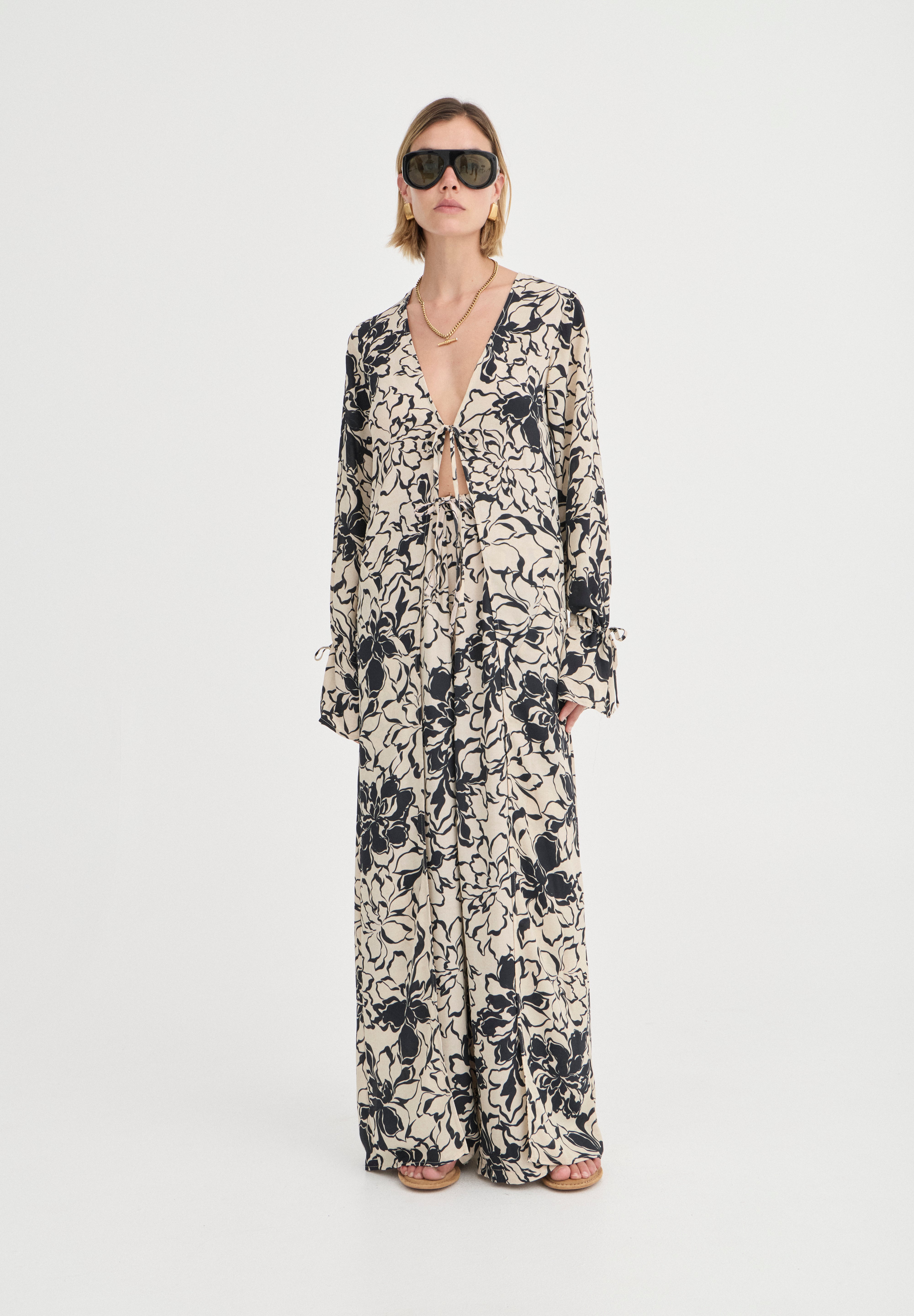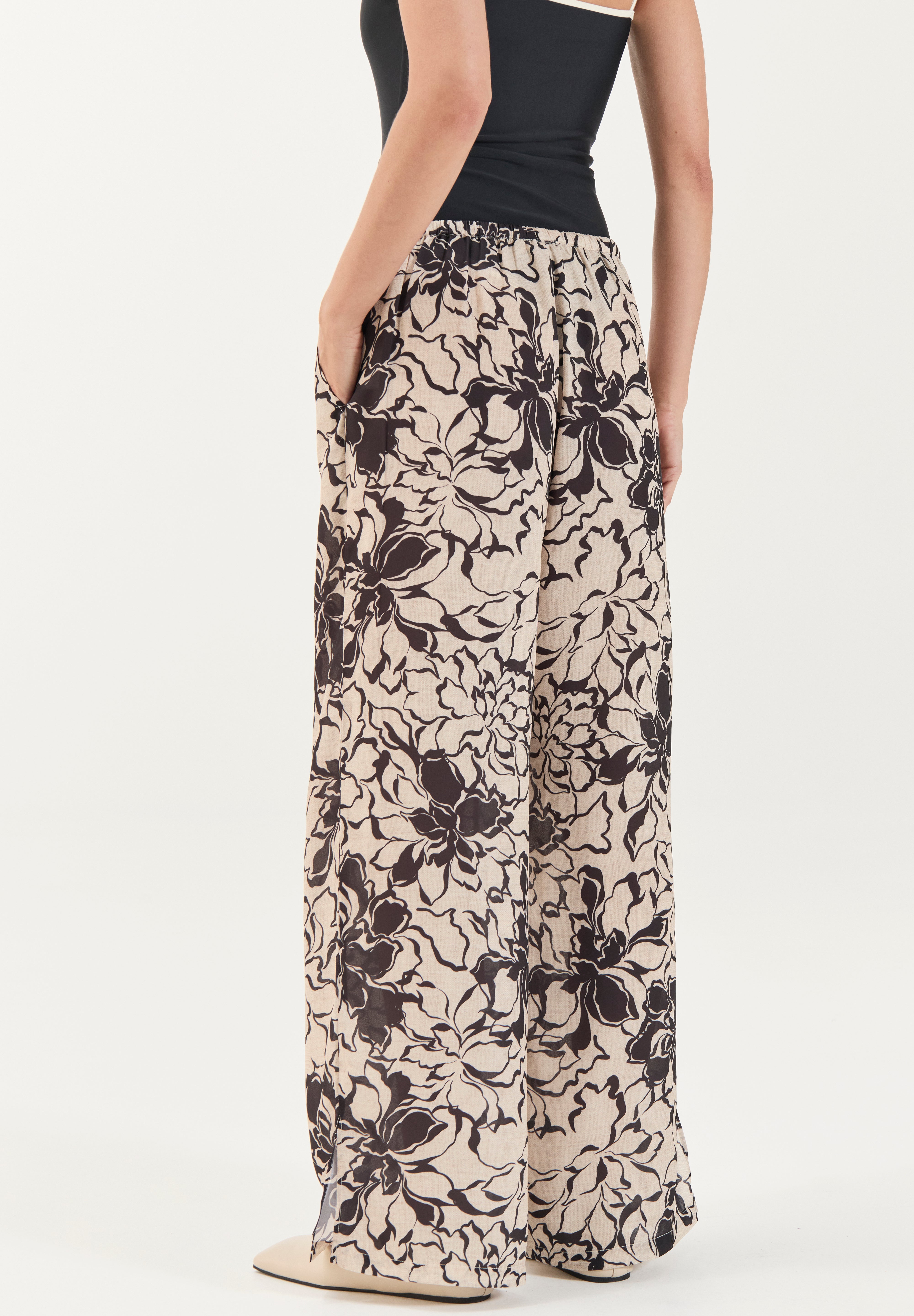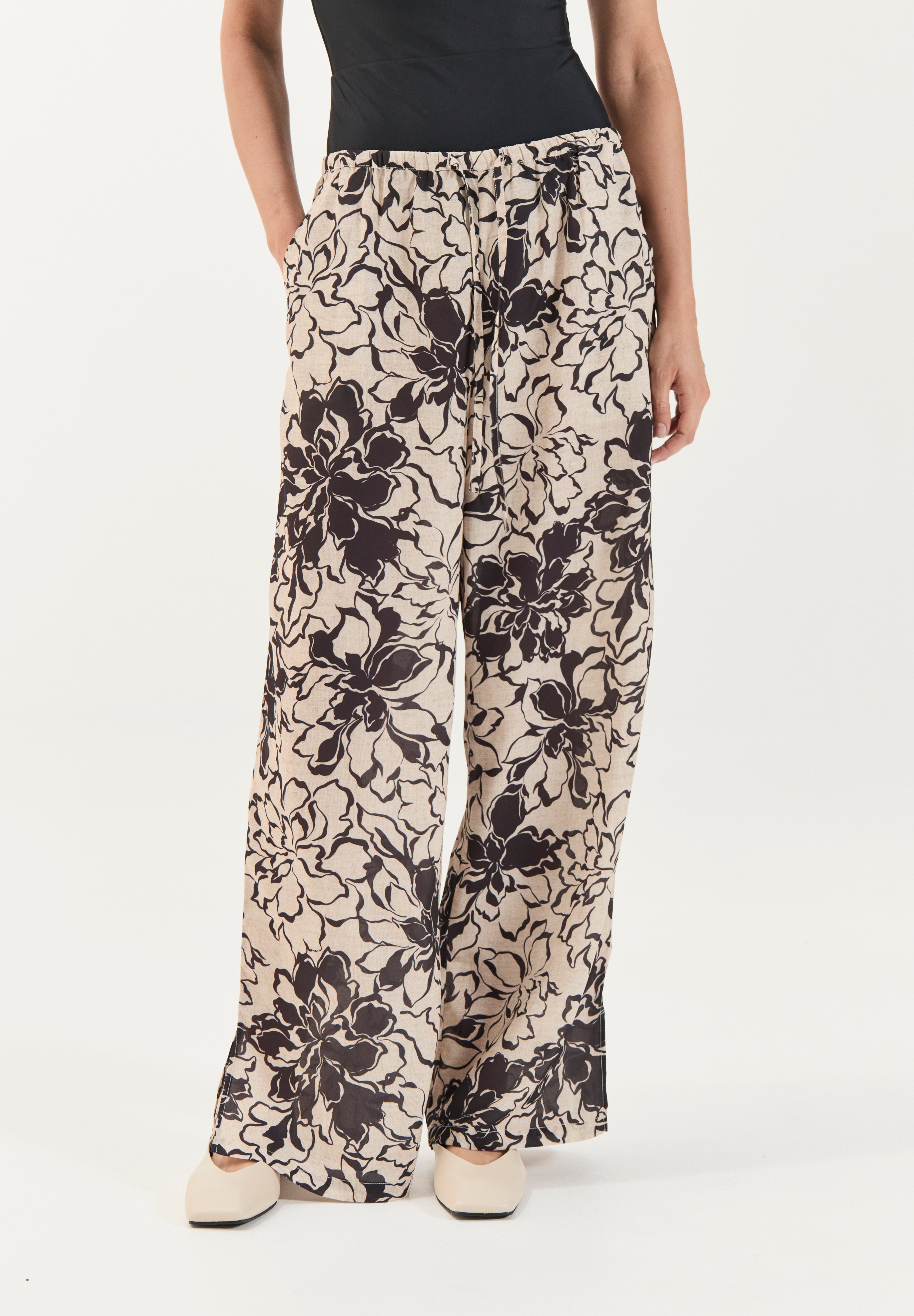 Features: All-over floral print, drawstring waist, full-length wide-leg silhouette