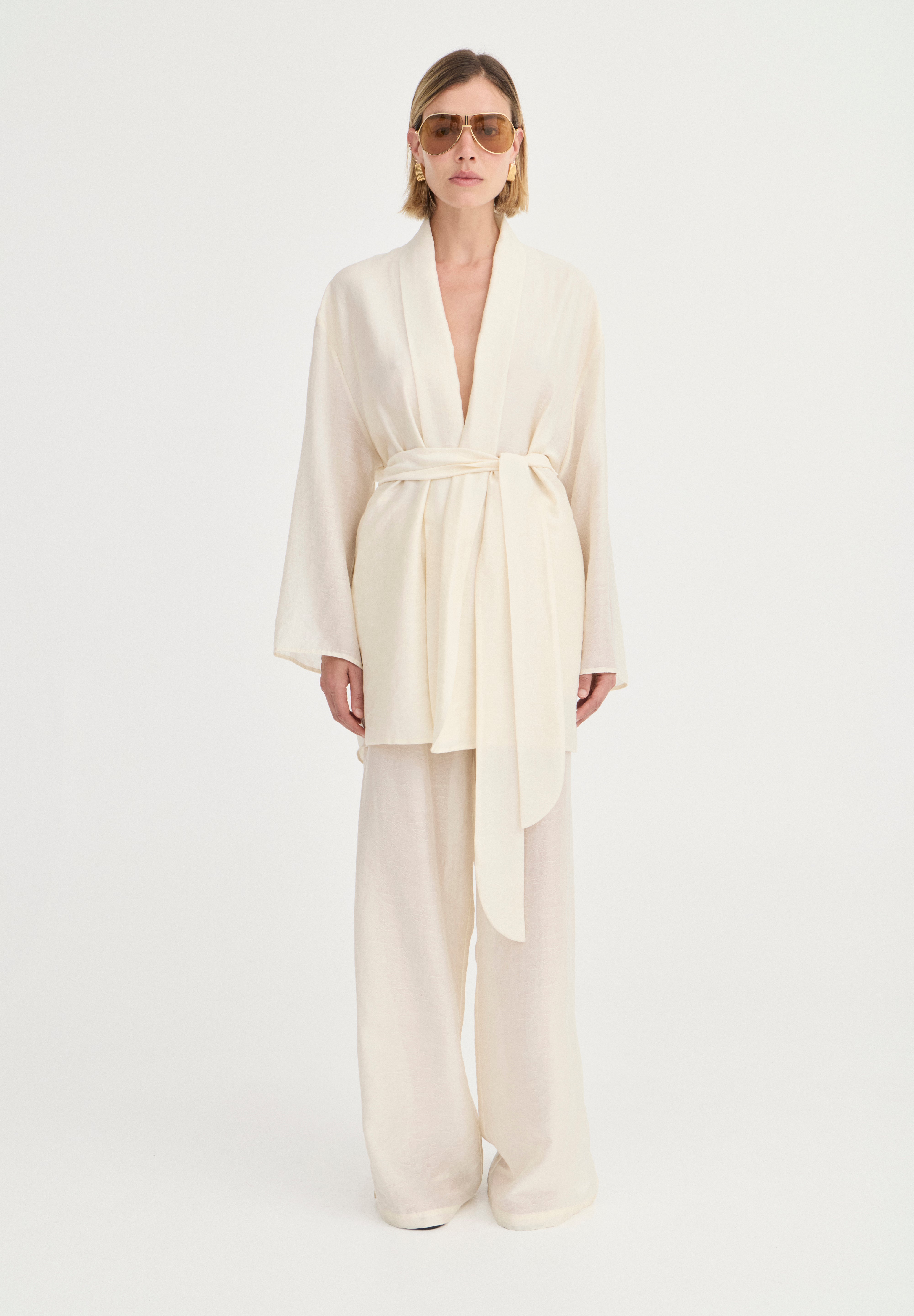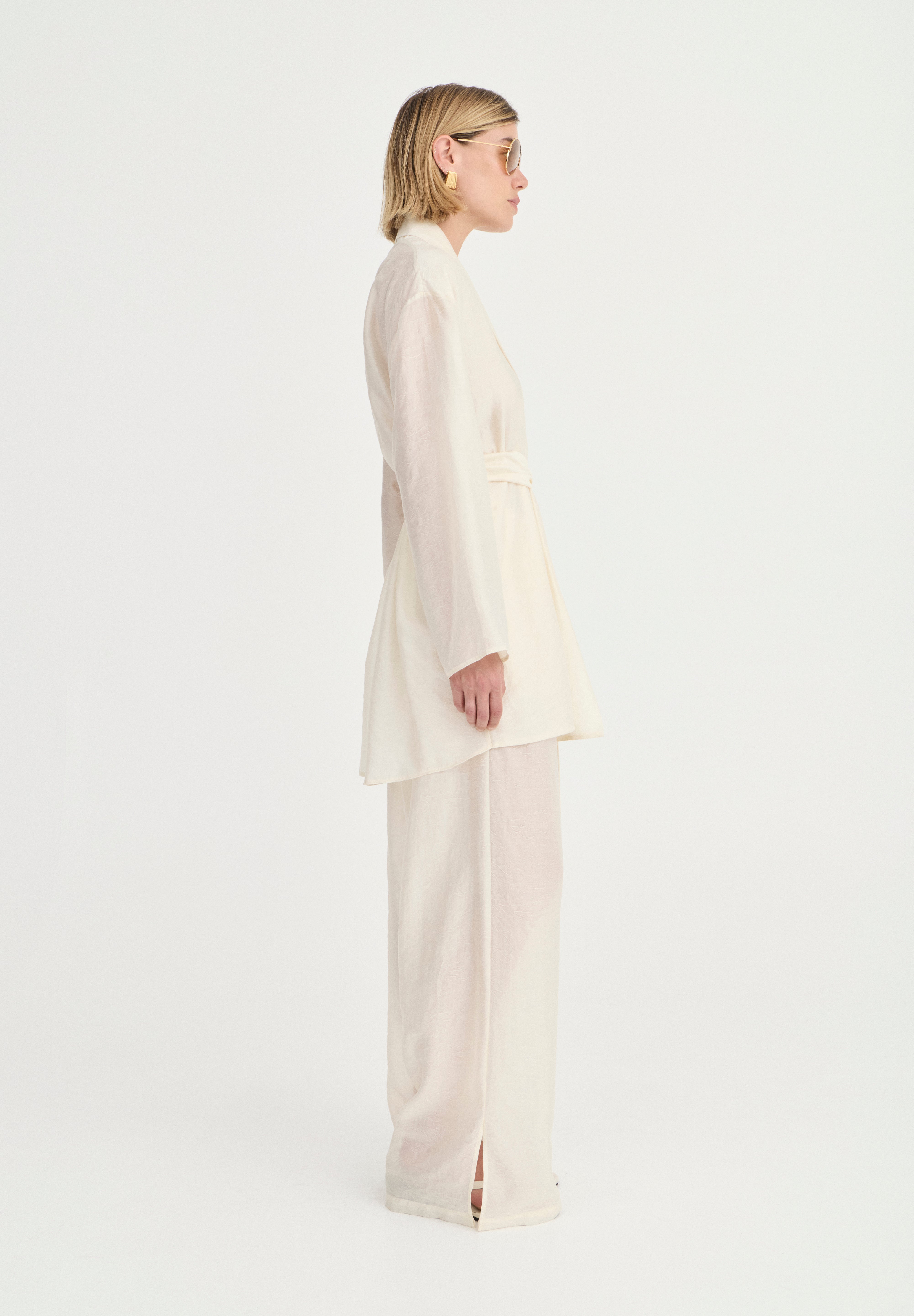 The Giulia Pants feature a relaxed, straight-leg silhouette, they sit comfortably at the waist with a thin elasticated waistband for a flexible, flattering fit. Finished with functional side pockets, they balance practicality with a refined finish. Designed to be worn as a set or styled back with simple separates, these pants offer a timeless approach to modern dressing.